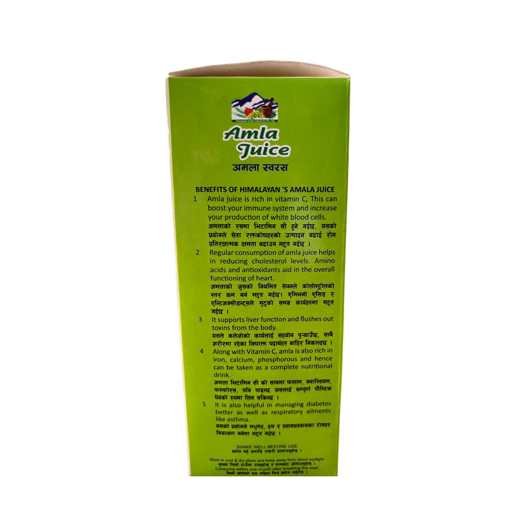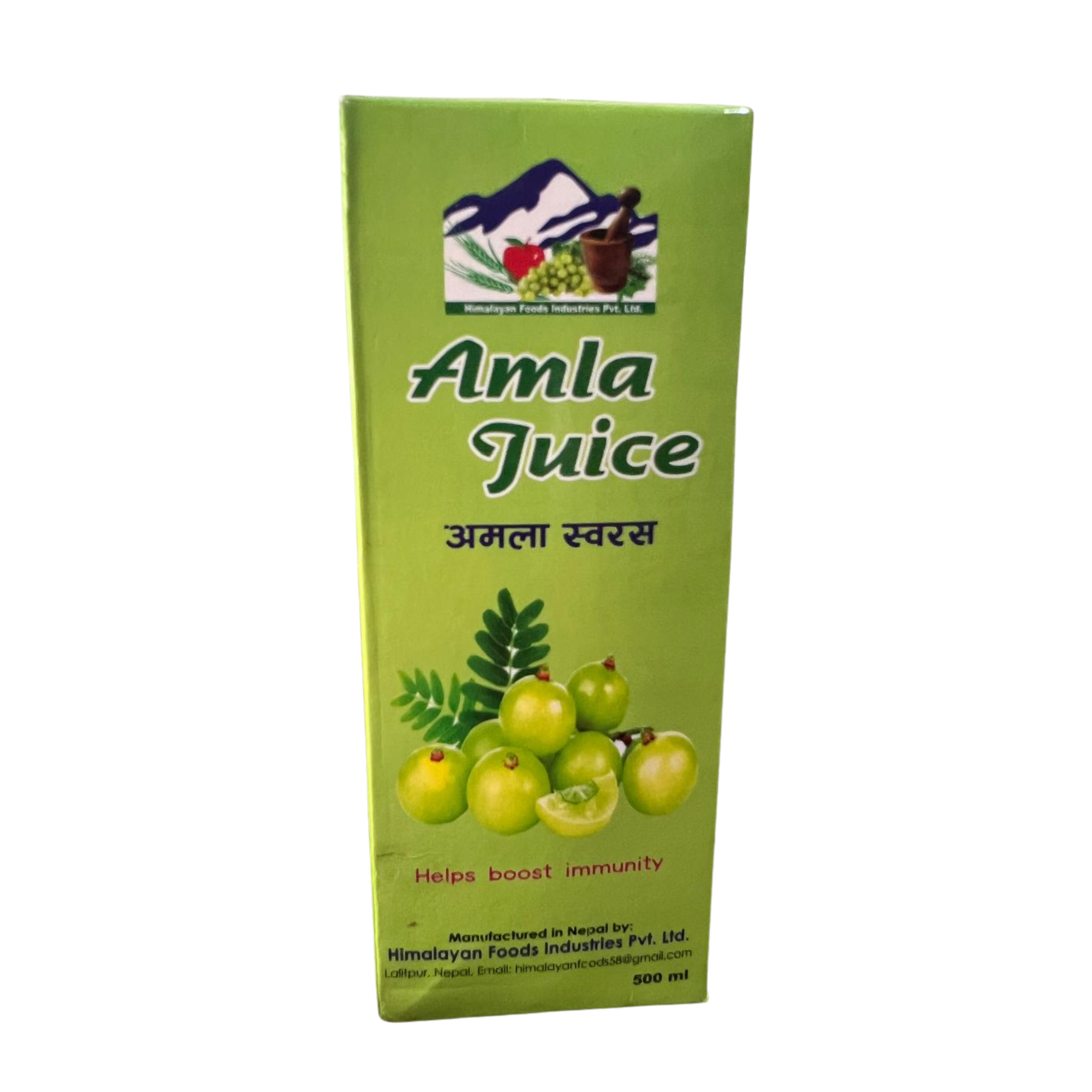 Ayurvedic JuicesPure and natural Amla (Indian Gooseberry) Juice rich in Vitamin C to strengthen immunity, support liver health, and promote overall wellness. Made in Nepal by Himalayan Foods Industries Pvt. Ltd.