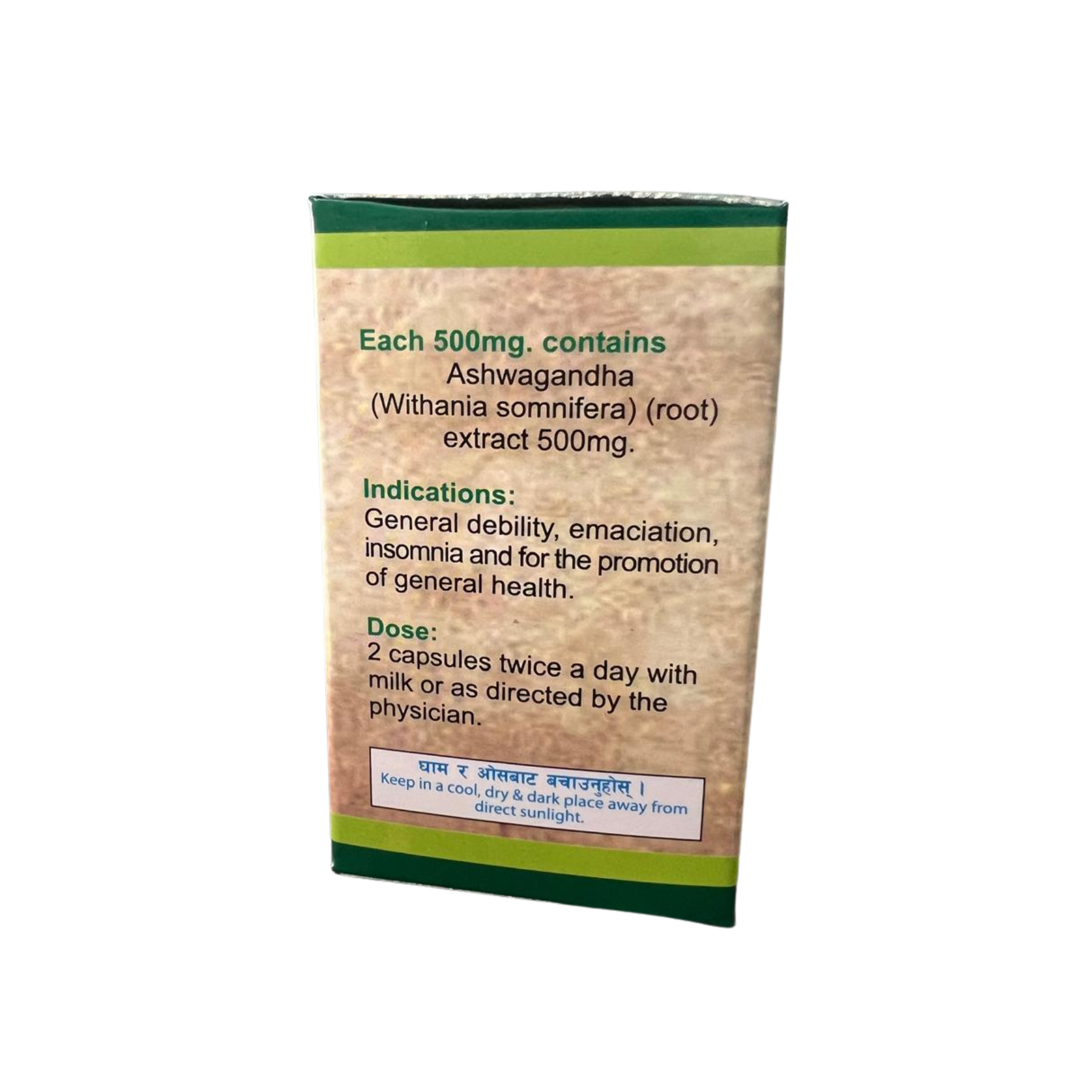 Ashwagandha (Withania somnifera) is one of the most powerful adaptogenic herbs in Ayurveda, known for its rejuvenating and strengthening properties. Each 500mg capsule contains pure Ashwagandha root extract that helps combat fatigue, stress, and weakness while supporting restful sleep and mental clarity. Regular use promotes vitality, stamina, and overall wellness.