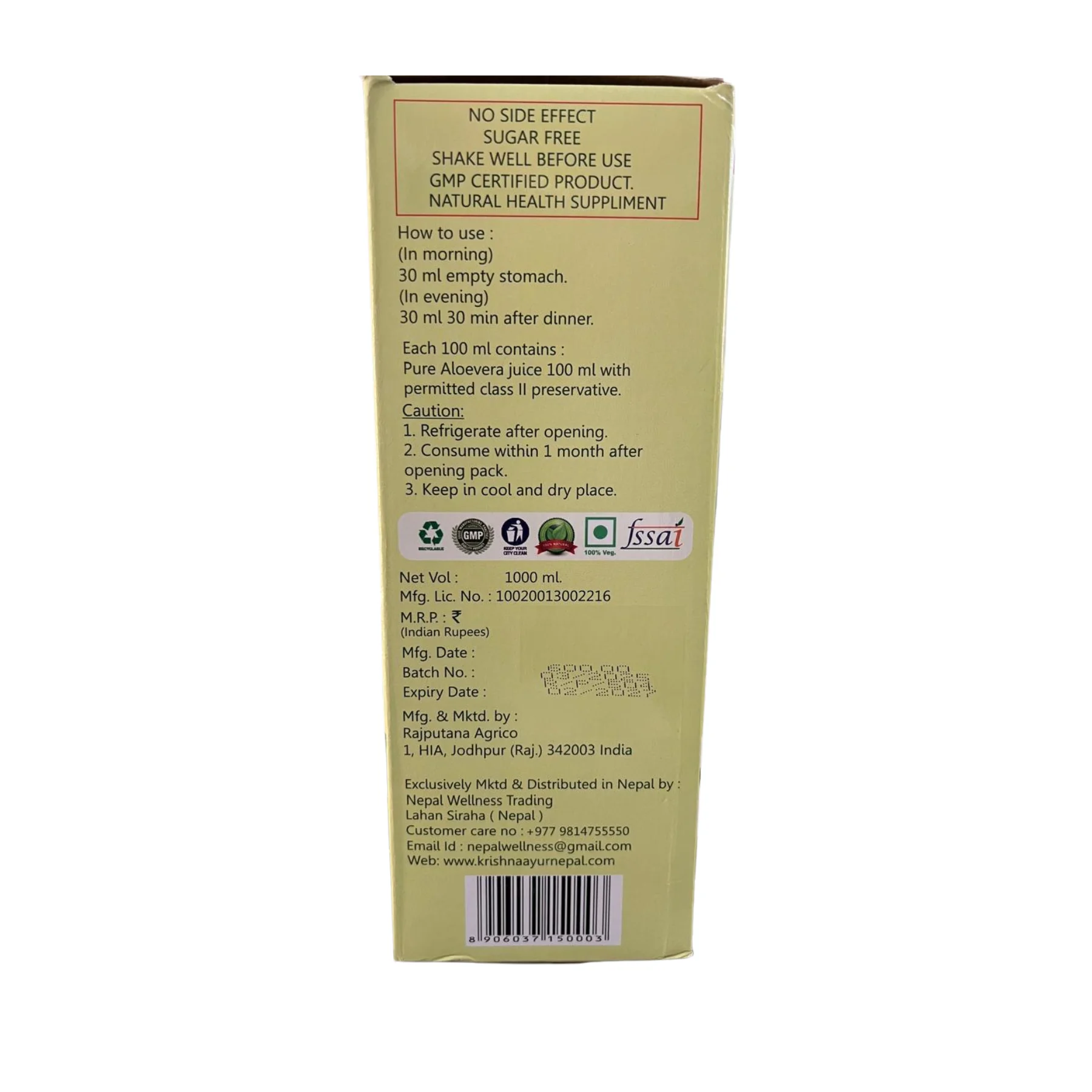 Distributed exclusively in Nepal by Nepal Wellness Trading, this product brings authentic Indian Ayurveda to your doorstep.