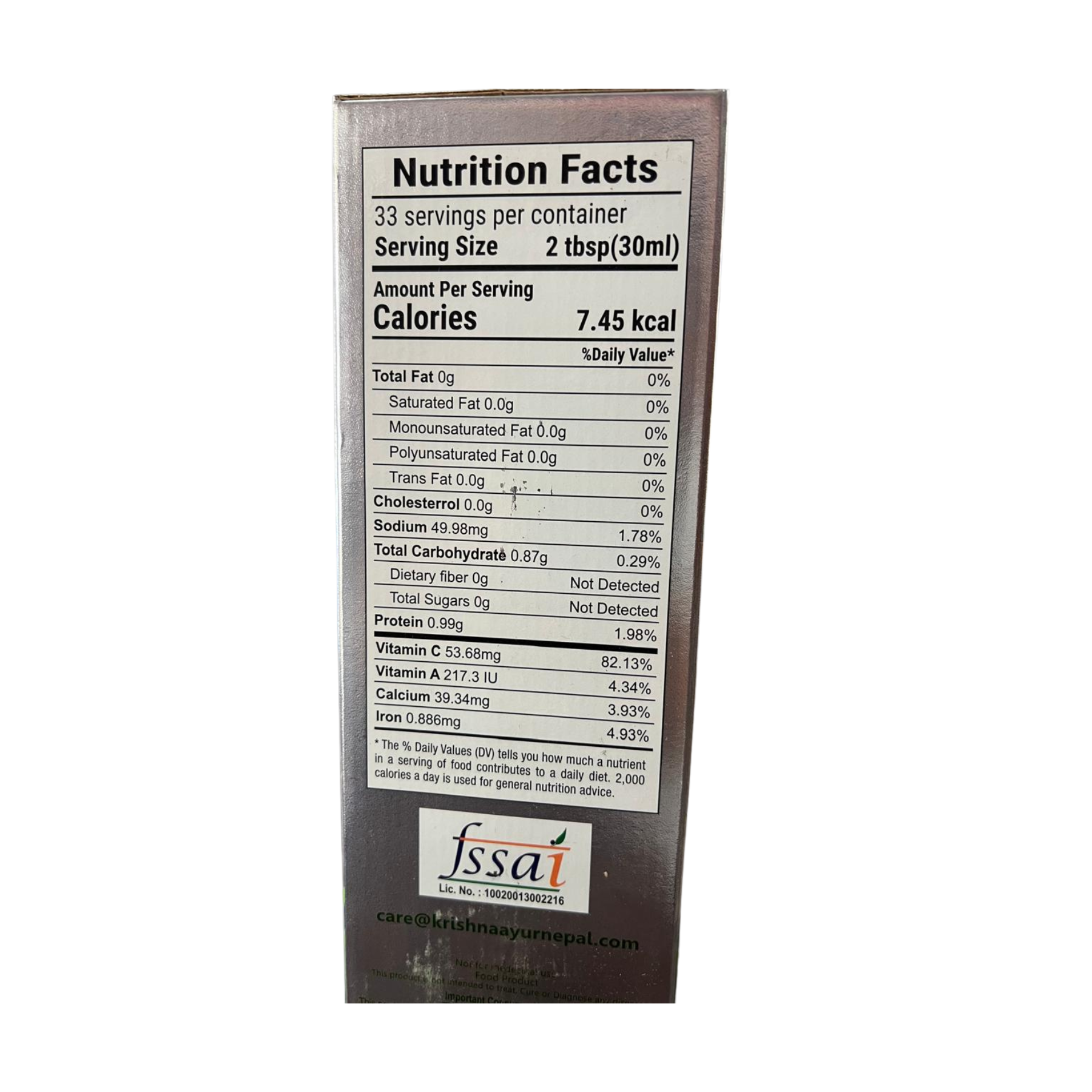 This sugar-free juice is rich in essential nutrients like Vitamin C, Vitamin A, Calcium, and Iron, making it a great daily supplement for maintaining overall wellness. Manufactured under GMP-certified standards, Krishna’s Wheatgrass Juice ensures purity and quality with no side effects.